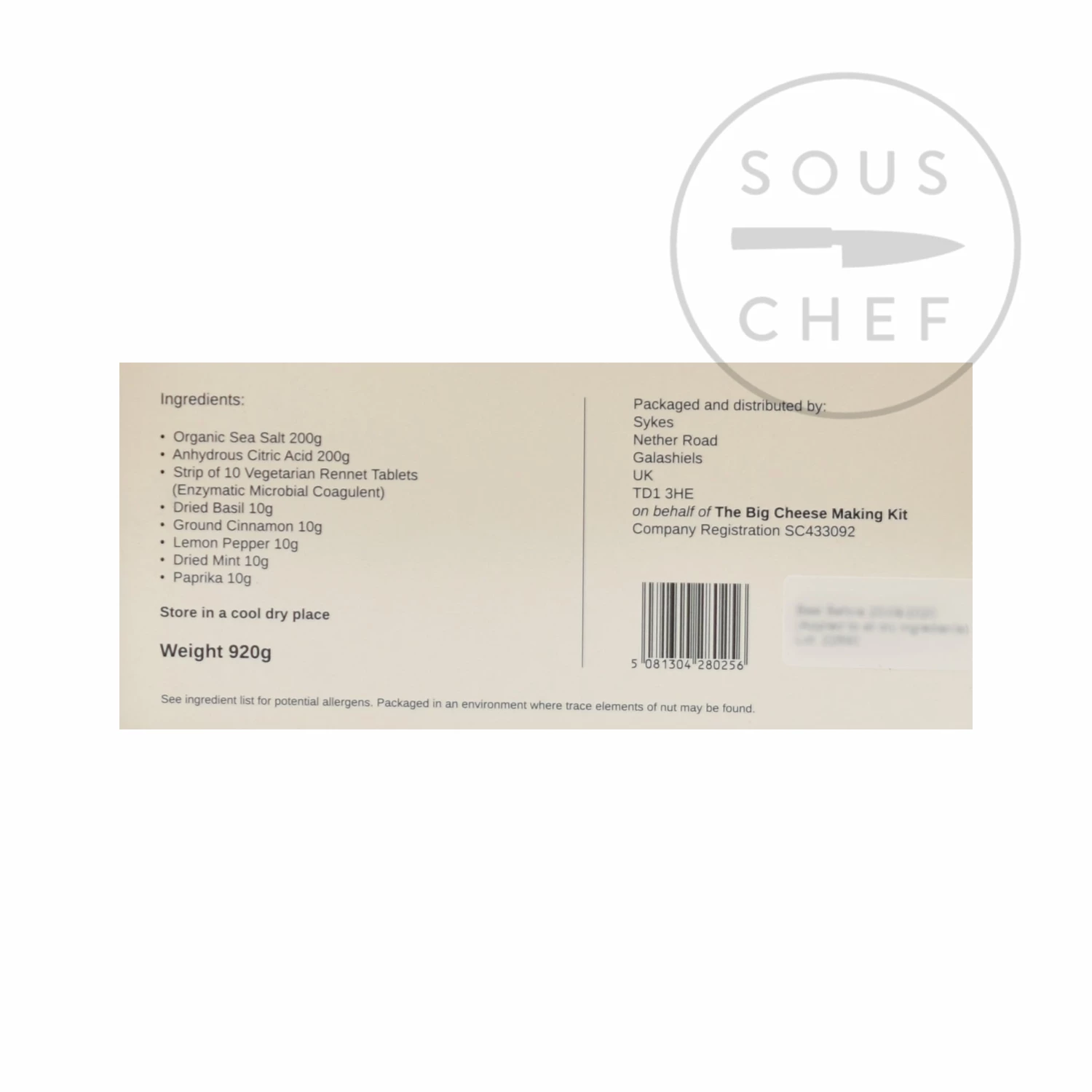 Included in the kit are: organic sea salt, citric acid, vegetarian rennet tablets, butter muslin, a dairy thermometer, herbs & spices (so you can customise your cheese), 3 cheese moulds and an instruction, guide & recipe booklet.