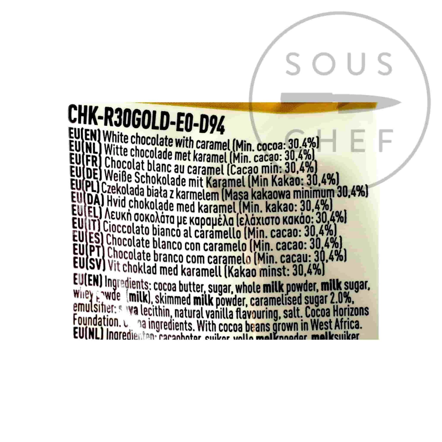 This pre-tempered 30.4% caramel couverture is a blend of three different beans from the Ivory Coast, Ghana and Ecuador. Made with caramelised sugar, caramelised milk and a sprinkle of salt, this toffee-like chocolate has a golden hue.