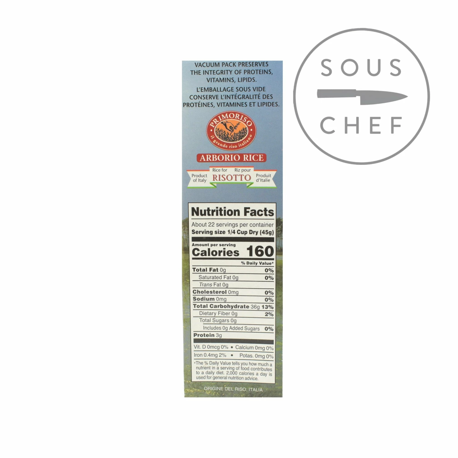 This Italian arborio risotto rice is a great choice for risottos because the kernels are high in starch which creates a creamy, smooth texture when cooked. The medium-length grains can absorb a lot of water, but still retain a good ‘bite’ and don’t become stodgy.