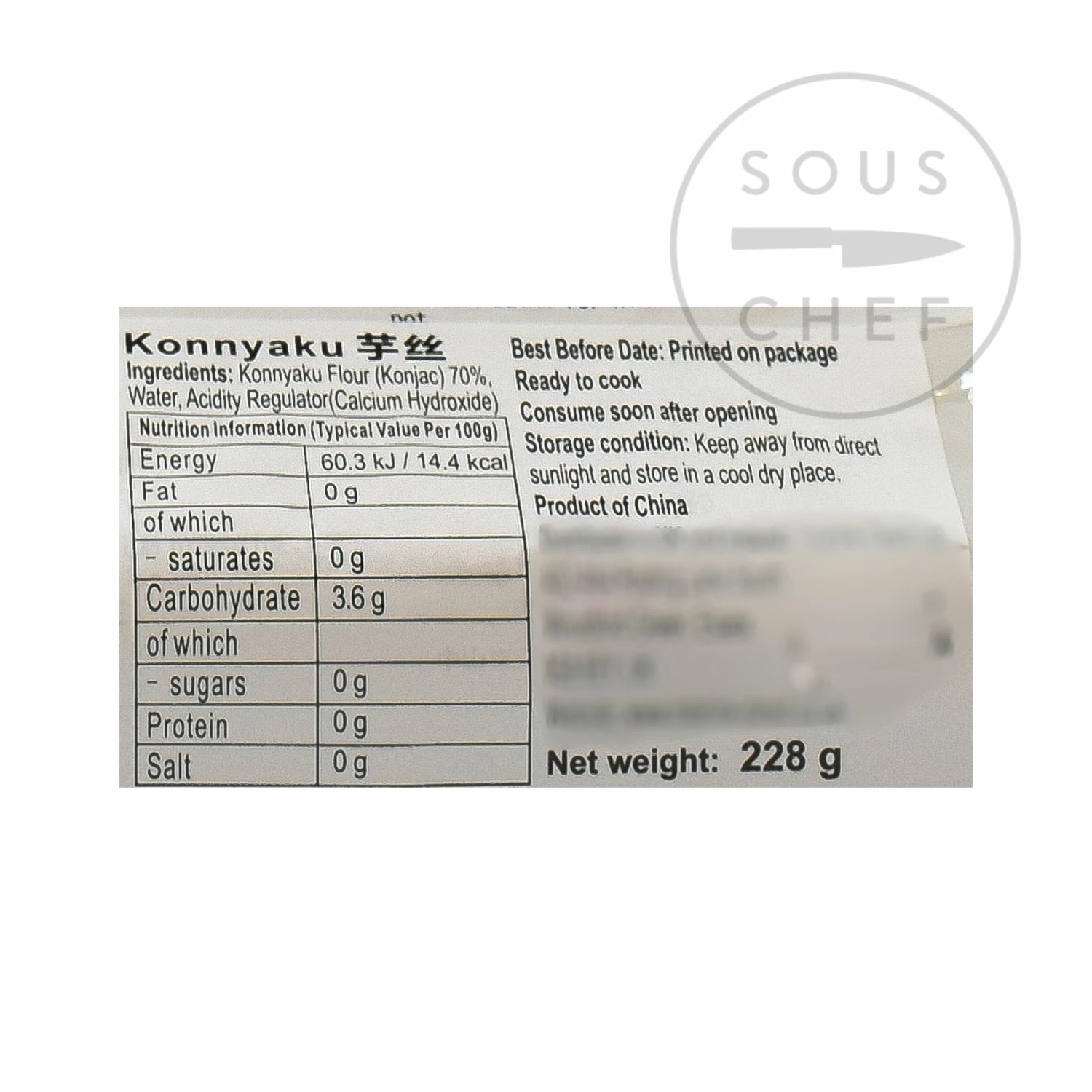 Konnyaku noodles come from the roots of the ‘konjac’ plant in the taro family – which are peeled, cooked, pounded, and then pressed into shape. This variety are very similar to glass noodles, but tied with a simple knot into small bunches or nests. You can each the ‘noodle knot’ to turn them back into normal noodles, or use as they are, and enjoy as if they are dumplings.