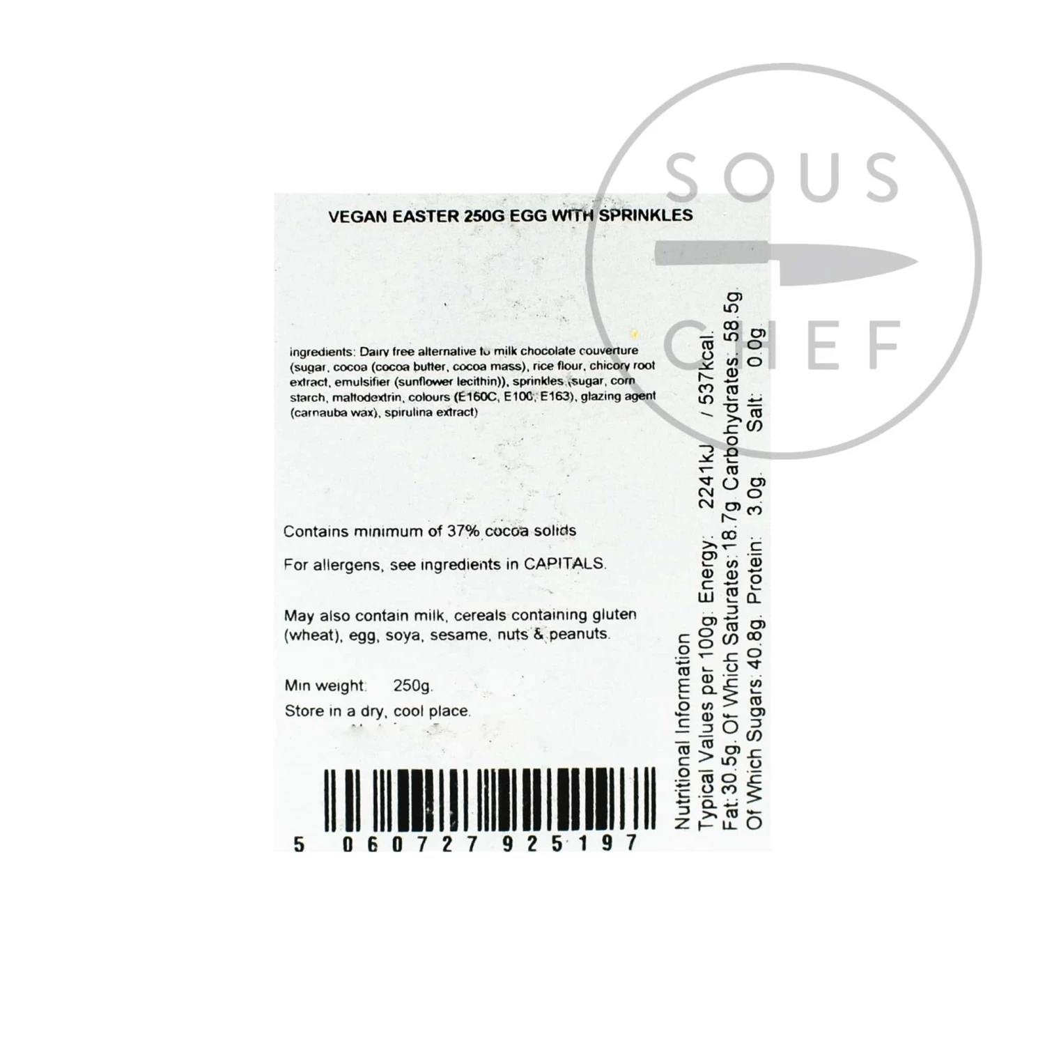 Cocoba’s Vegan Chocolate Easter Egg with Sprinkles is the most luxurious way to enjoy a dairy-free Belgian chocolate alternative this Easter. This premium chocolate egg has a beautifully rich flavour from the high cocoa content, yet still has the creaminess of Cocoba’s Belgian milk chocolate – without the addition of dairy. This egg is the perfect gift for vegan family or friends.Â