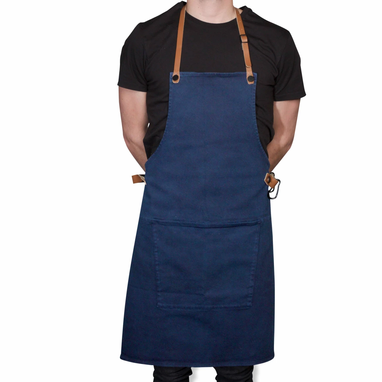 The Dutchdeluxes canvas BBQ apron in dark blue keeps you and your clothes looking great while you take care of the barbecue. The stylish canvas apron keeps your clothes safe from ash, sparks and spitting fat, both outside at the barbecue and in the kitchen.Â