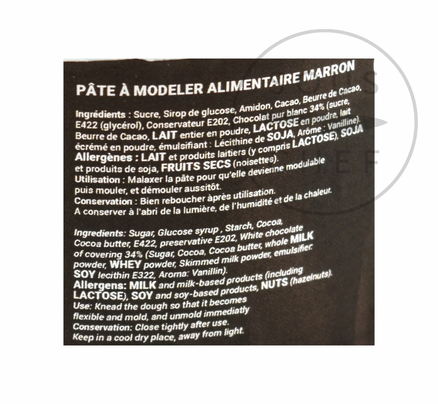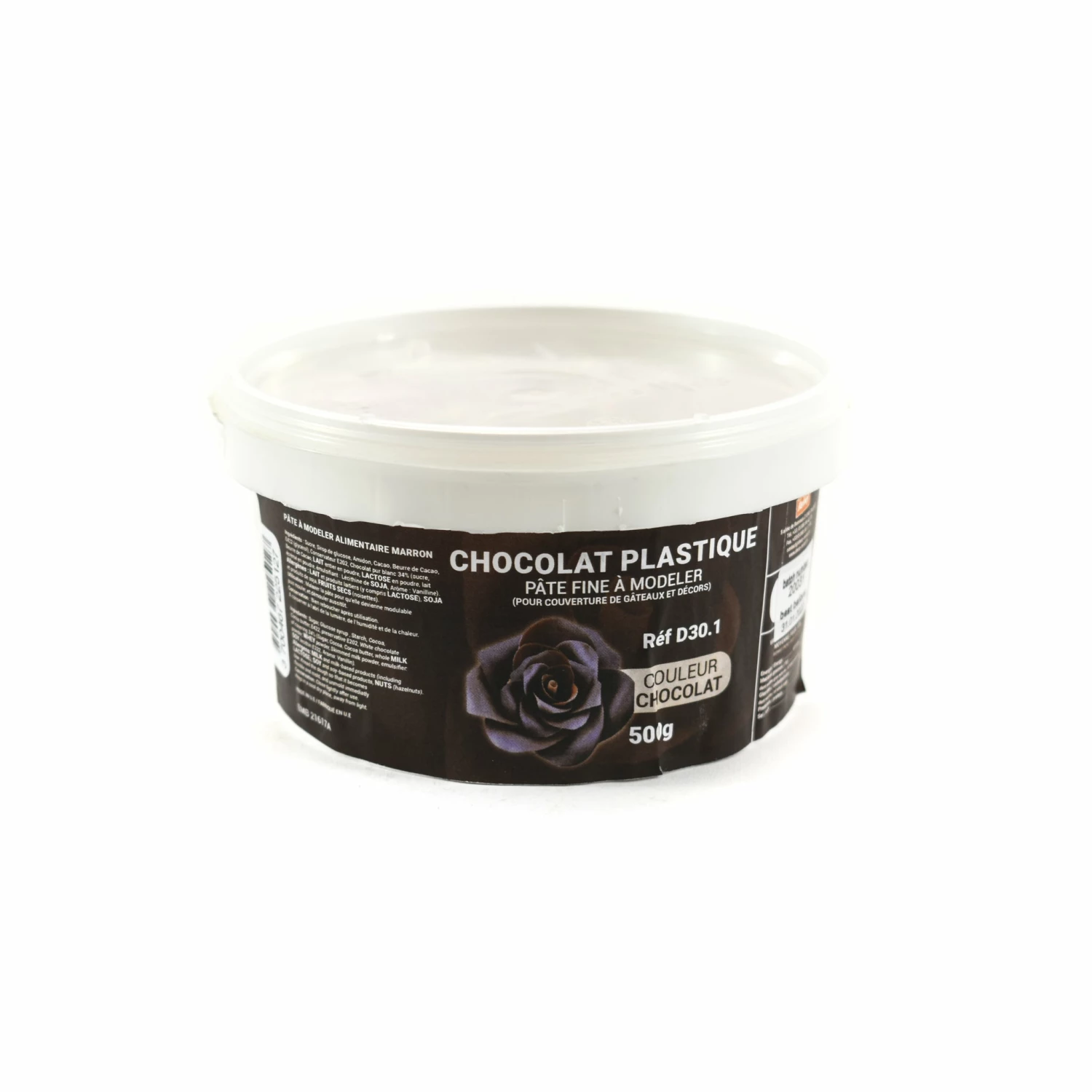 To use, knead the dough so it becomes flexible and shape immediately. Close tightly after use. White chocolate plastique is also available.