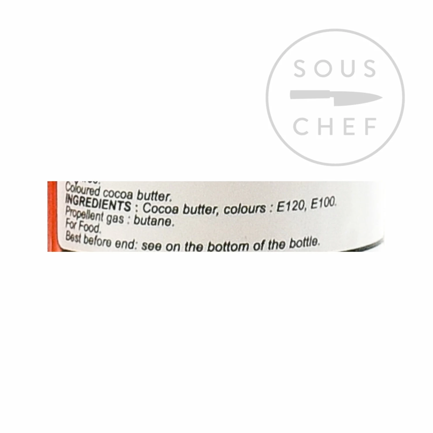 Ingredients: Cocoa butter, E100-E120