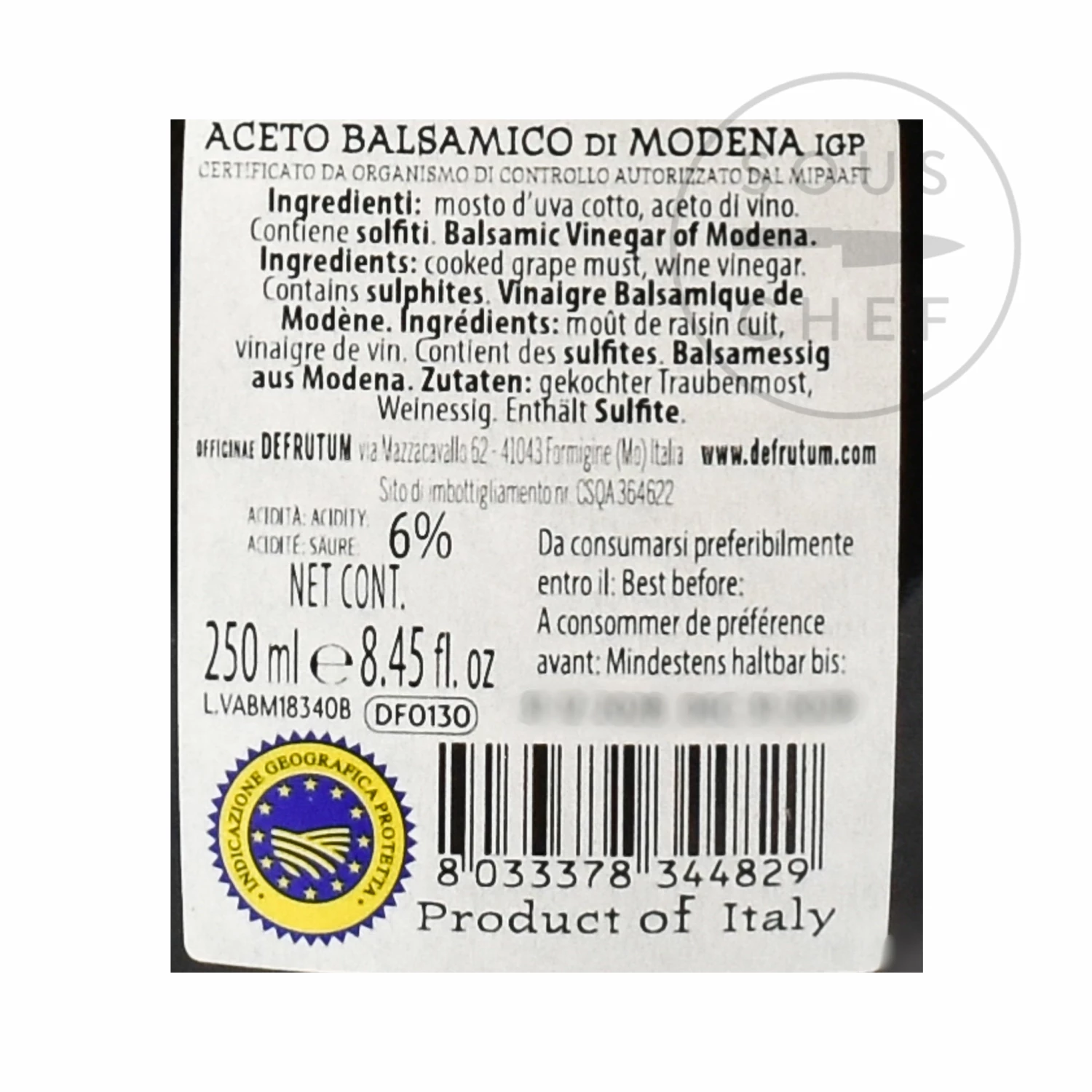 Ingredients: cooked grape must, wine vinegar. Contains sulphites.