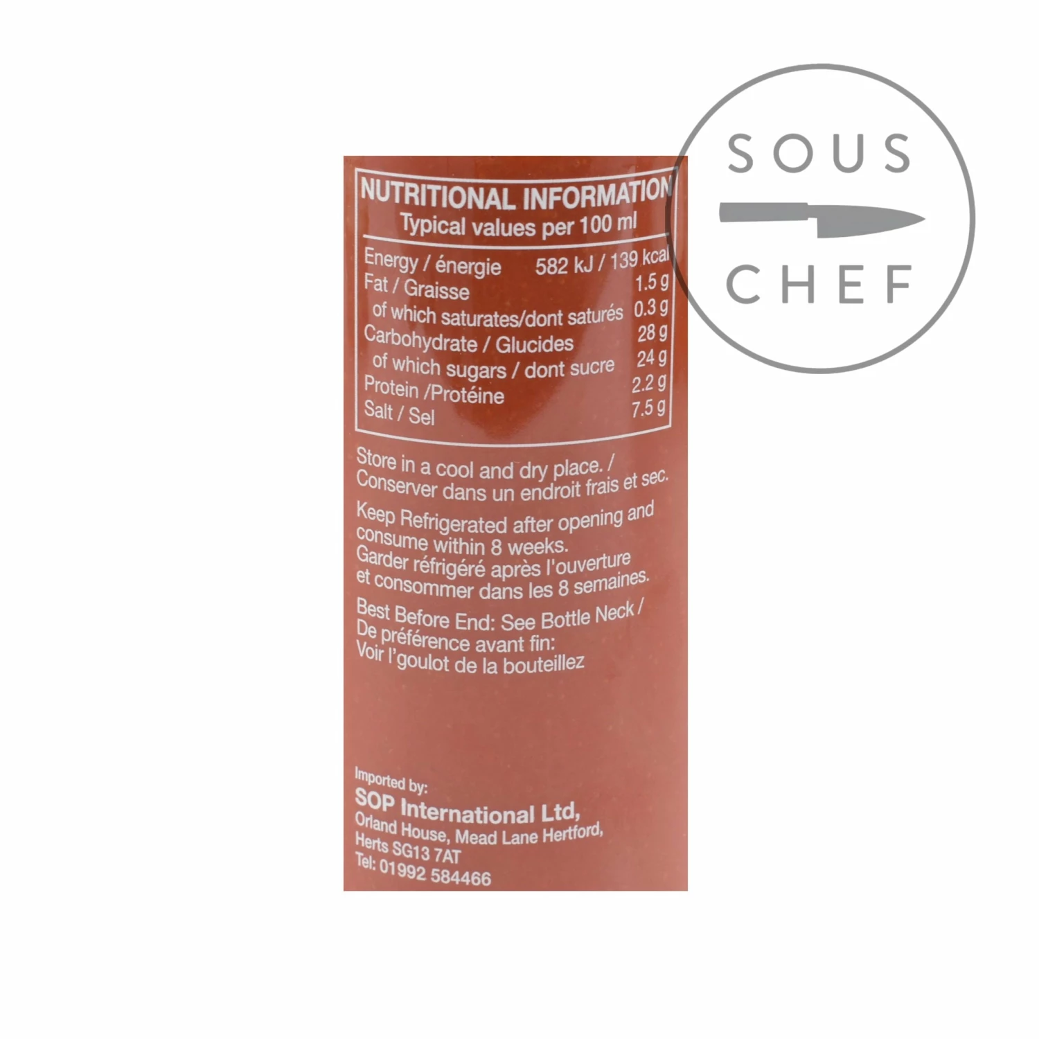 Ingredients: Chilli, sugar, water, garlic, salt, seasoning Wasabi paste 4% (horseradish, Wasabi [Wasabi japonica] 10%, corn starch, soybean oil, water, salt, flavouring), flavouring, flavour enhancer:L 261, stabilizer: E415, acidity regulators: E260, E330, preservative: E202.