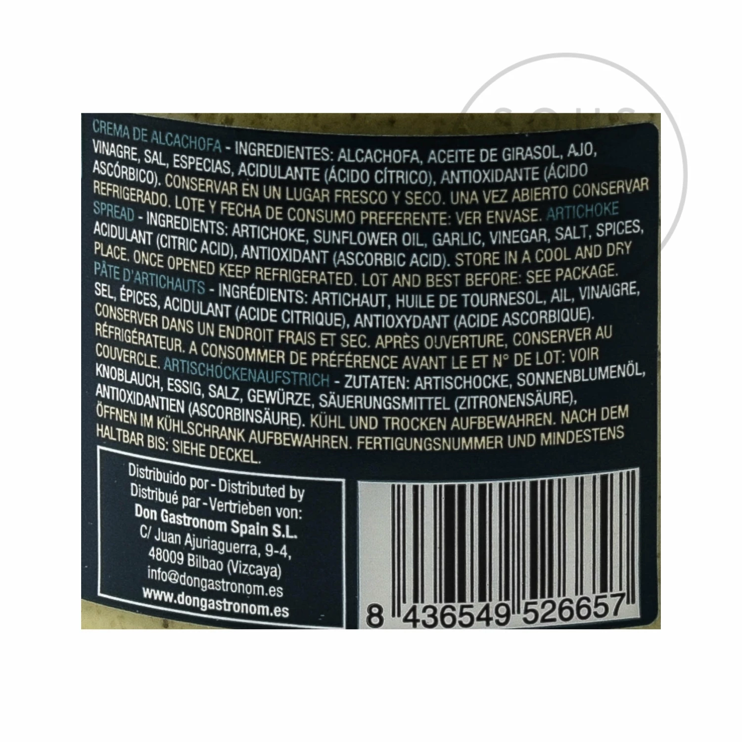 Ingredients: Artichoke, sunflower oil, garlic, vinegar, salt, spices, acidulant (citric acid), antioxidant (ascorbic acid).