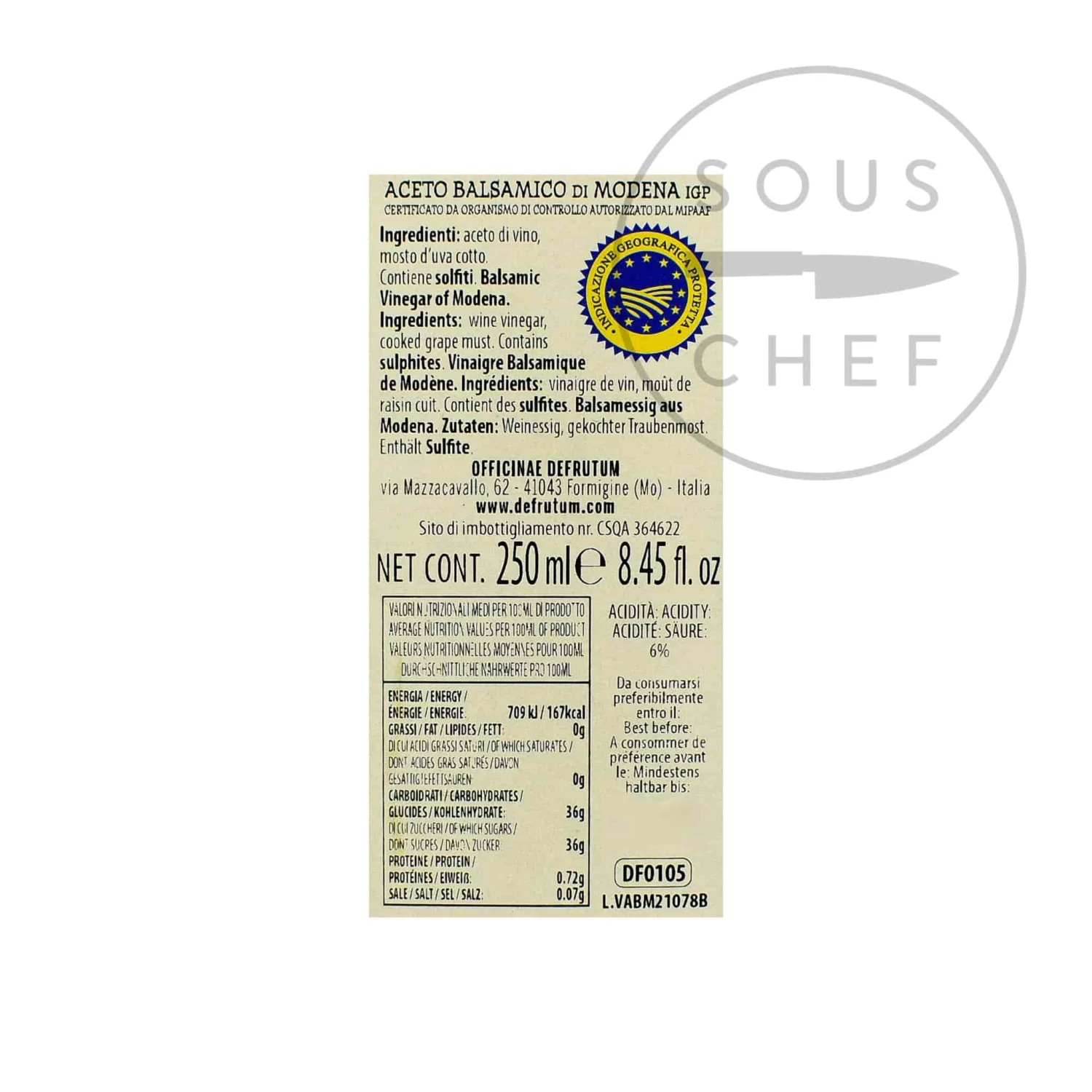 Ingredients Defrutum Balsamic Vinegar IGP 4 Yr Aged – 2 Crowns 250ml