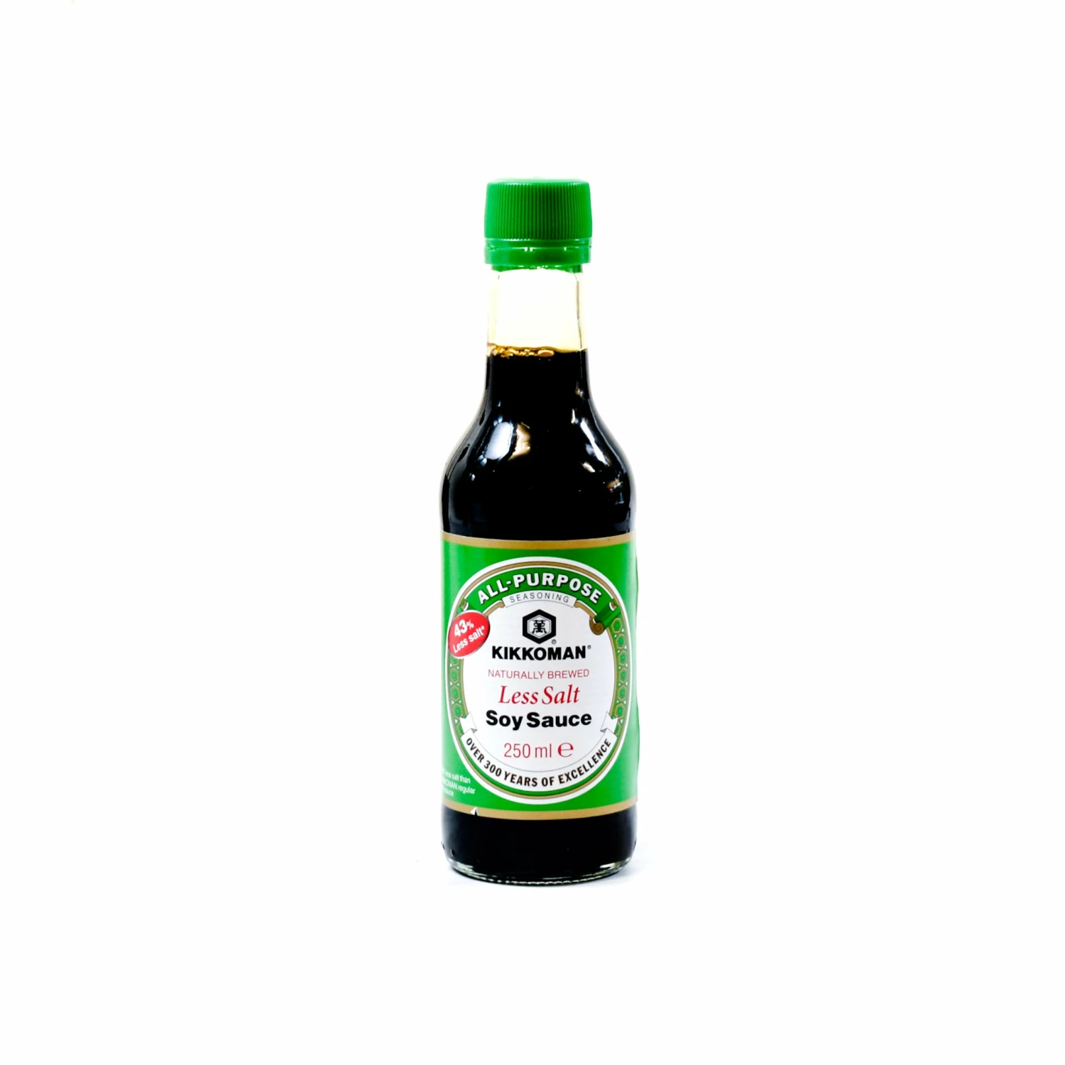 Kikkoman reduced salt soy sauce is an entirely natural variety, made from soybeans, water, wheat and salt. Three months into the traditional brewing process, the ‘Maillard Reaction’ turns the sauce into a clear, red-brown colour – so no additives or syrups are needed to enhance Kikkoman soy sauce’s colour or flavour. The resulting ‘less salt soy sauce’ is a complex and well-balanced sauce containing 300 natural aroma components. The salt content is reduced using a special fermentation process which retains the unique flavour of traditional Kikkoman soy sauce, but with 43% less salt.Â