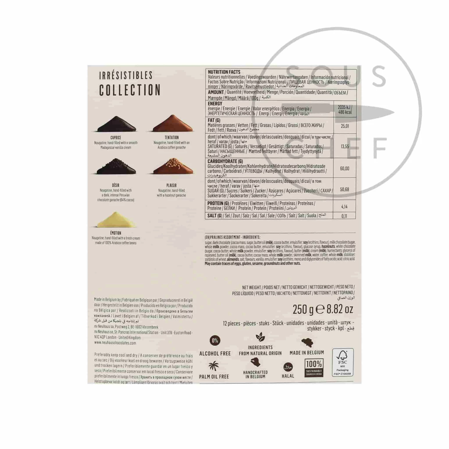 Neuhaus’ “Irresistibles” Belgian chocolate selection contains 12 of the best-loved nougat chocolates in milk and dark – from one of the finest chocolate houses in Belgium. Featuring five different fillings including fresh cream and coffee ganache, the chocolates are beautifully presented in an elegant box with a bow – a stunning gift for those with a sweet tooth, or treat for yourself.