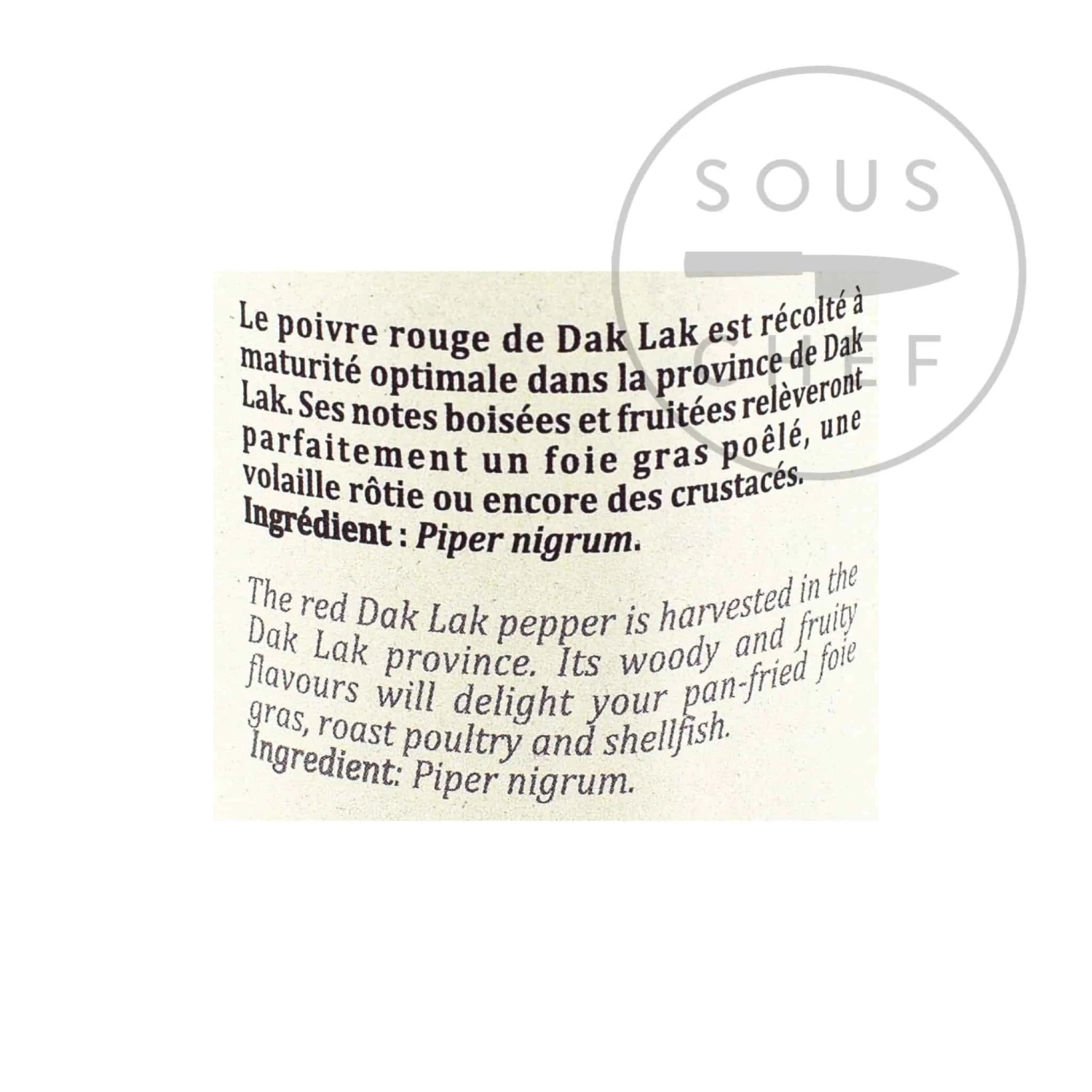 Terre Exotique’s red Dak Lak pepper is powerfully hot Vietnamese pepper – a fantastic pairing for white meat and shellfish. As well as its pungent heat, this pepper balances notes of balsamic and fruit.Â