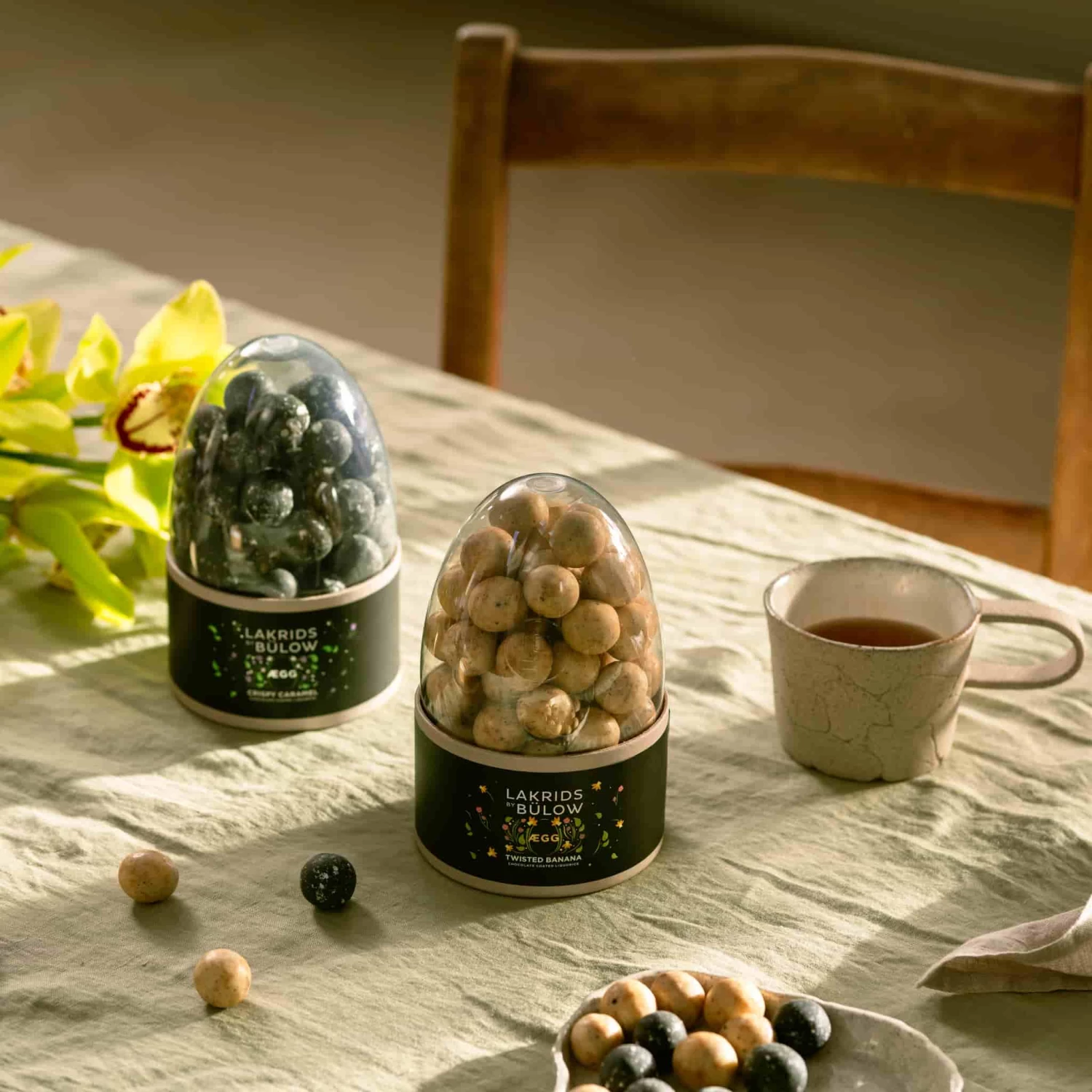 The Lakrids Easter Egg is back with a brand new flavour. The egg-shaped capsule is filled with the finest liquorice spheres. Each piece of liquorice is coated with a crispy white chocolate casing. A fruity banana flavour is balanced out by a chewy, salted liquorice centre. The twisted banana liquorice is a luxurious alternative Easter egg and makes a special gift.