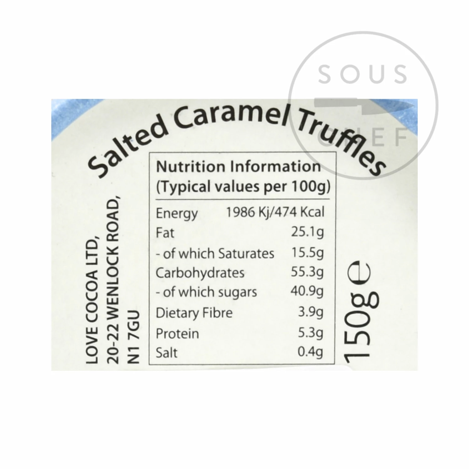 Ingredients: Glucose, sugar, cocoa butter, whole milk powder, cocoa powder, cocoa mass, sweetened condensed skimmed milk, water, butter (milk), salt, (emulsifier) soy lecithin, natural flavouring. Milk chocolate contains min. 34% cocoa solids, min. 20 % milk solids. Made in a factory which handles nuts, seeds, soya and milk. Allergens listed in bold.