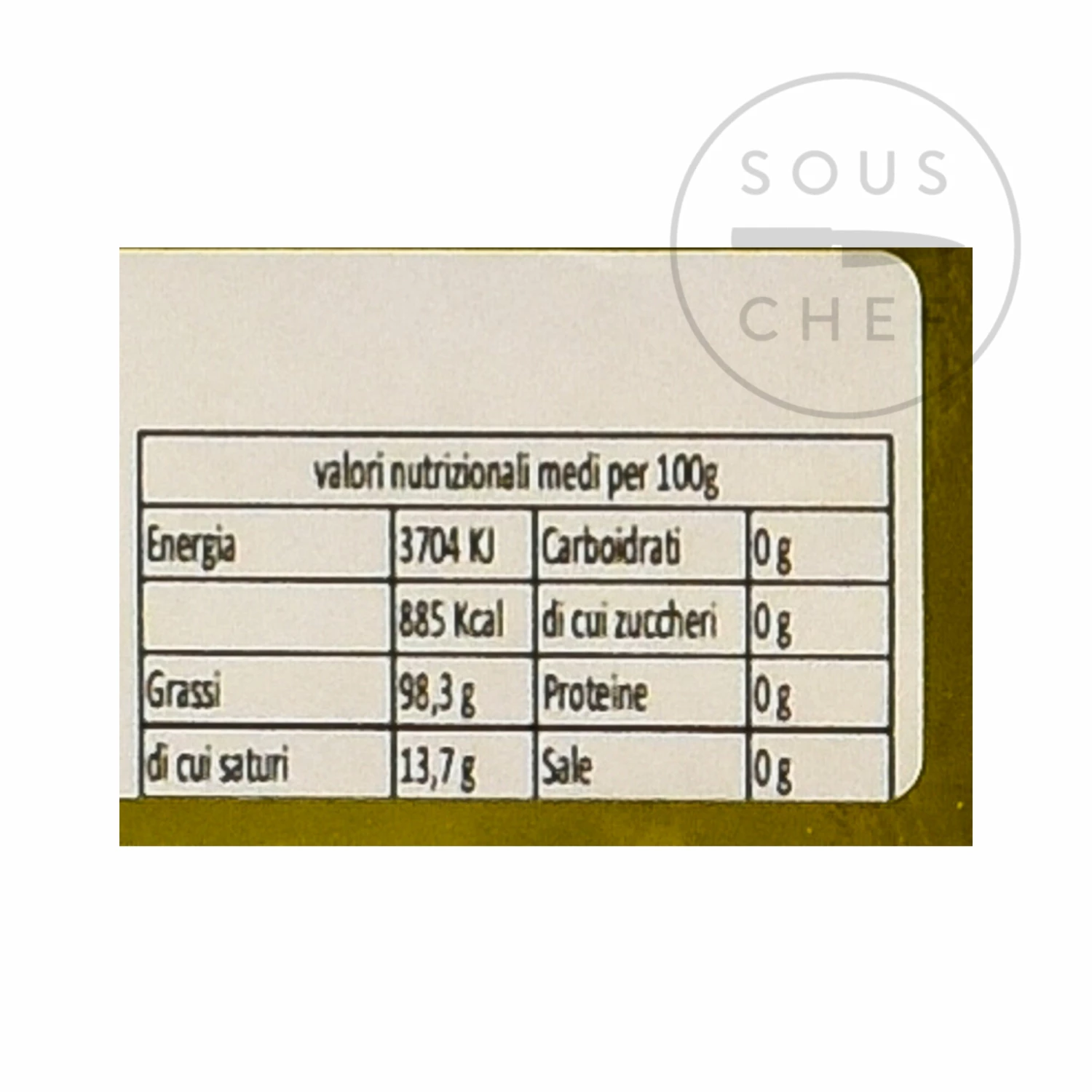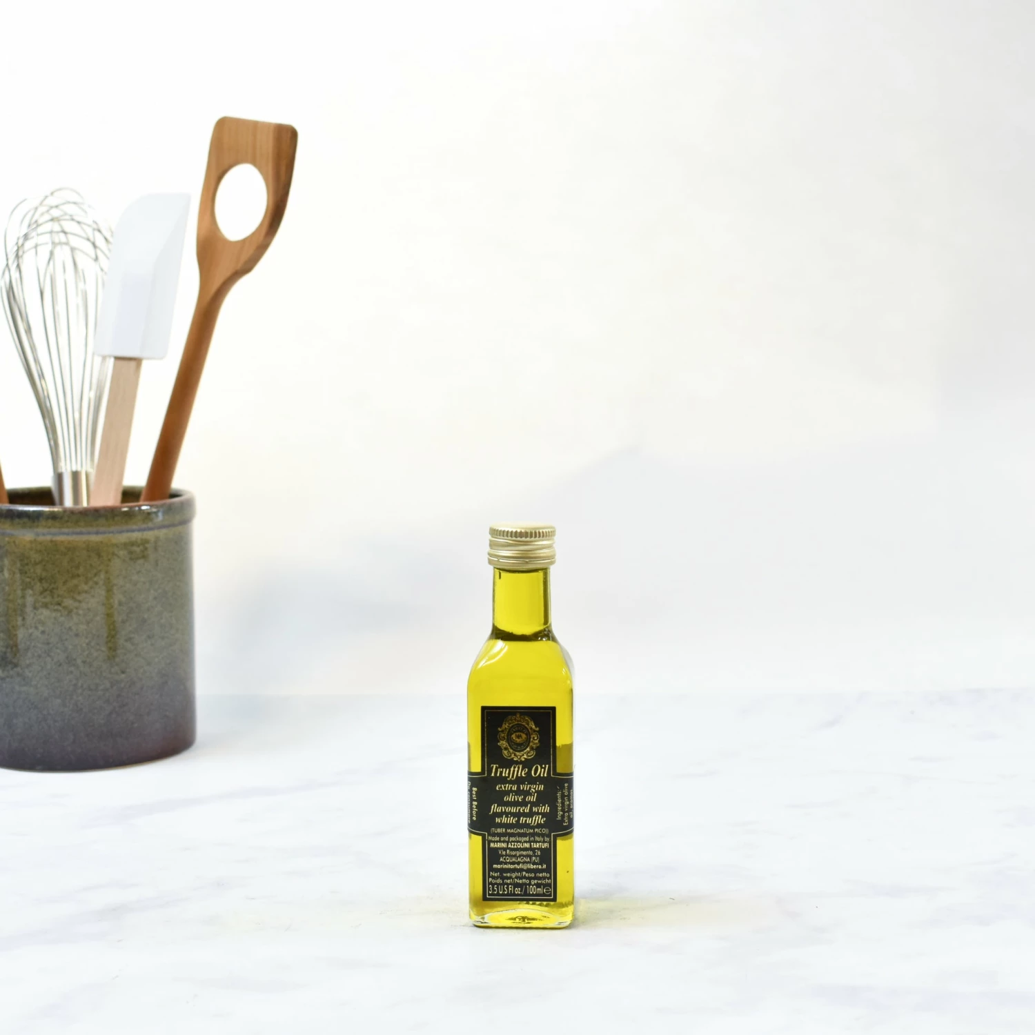 Ingredients: Extra virgin olive oil, truffle aroma (tuber magnatum pico). May contain traces of gluten, milk, celery, fish, nuts.
