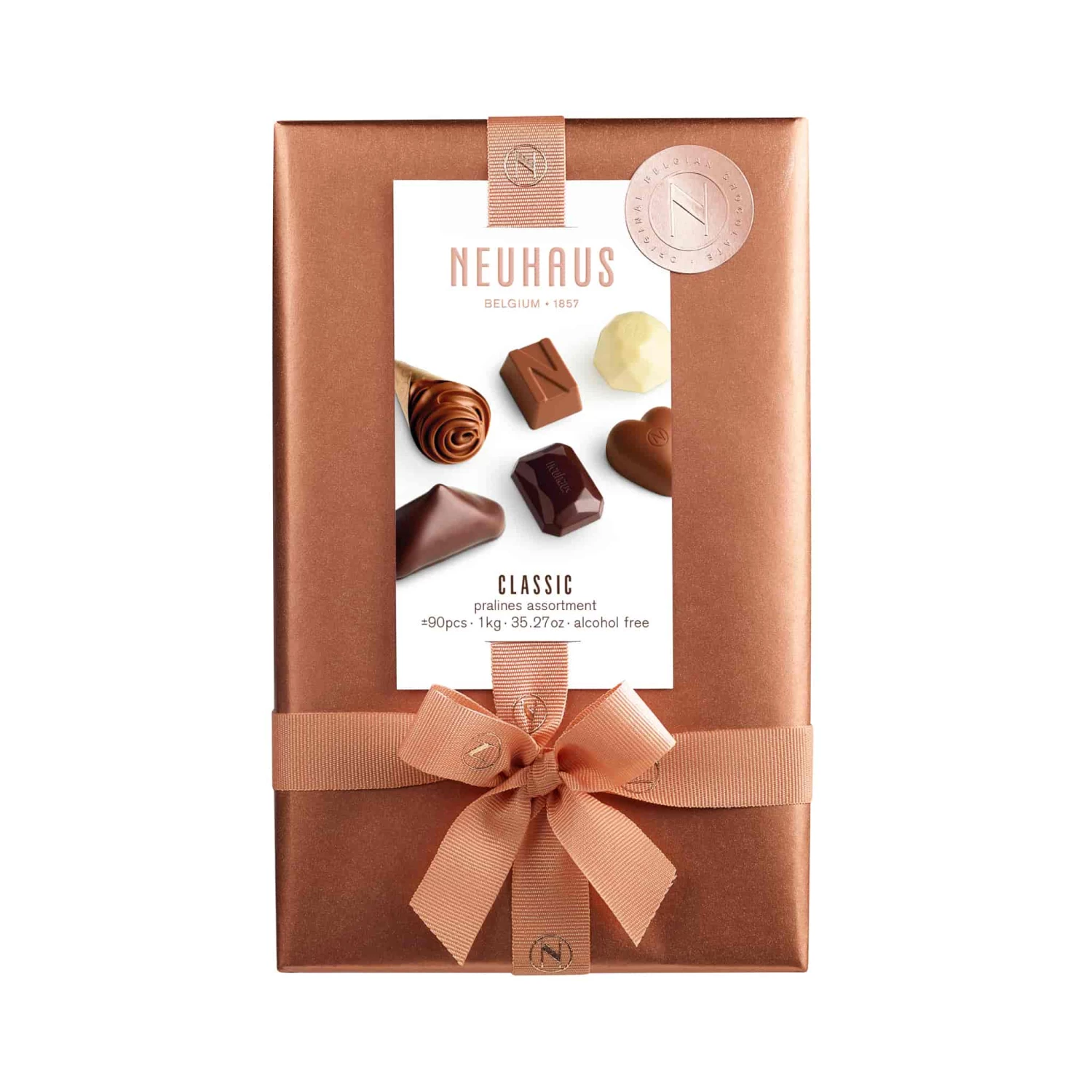 Neuhaus’ Belgian chocolate classic ballotin collection includes 88 pieces of praline, ganache and gianduja – an indulgent selection of white, milk and dark chocolates. From one of the finest chocolatiers in Belgium.