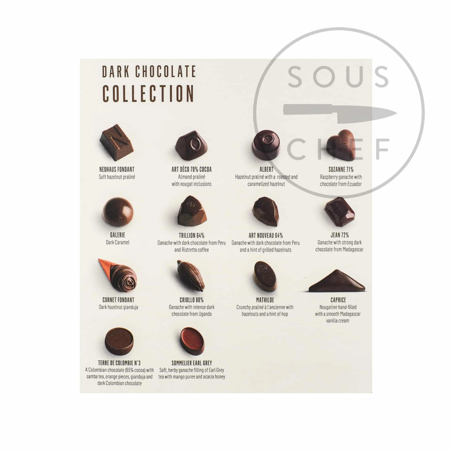 Neuhaus’ dark Belgian chocolate selection is an elegant gift for those that love dark chocolate – from one of the finest chocolate houses in Belgium. The 24 piece selection includes indulgent pralines and ganaches, from almond and hazelnut to caramel and fresh raspberry.Â