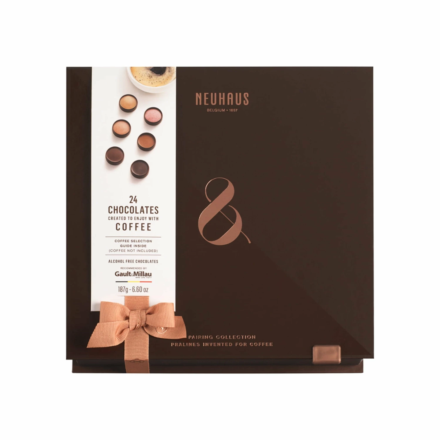 Neuhaus’ pralines coffee pairing selection is the perfect sweet treat to serve with an espresso – from one of the finest chocolatiers in Belgium. Containing 24 chocolate pralines in six different flavours, this collection is designed to be enjoyed alongside coffee – think of it as a tasting flight in chocolate form.