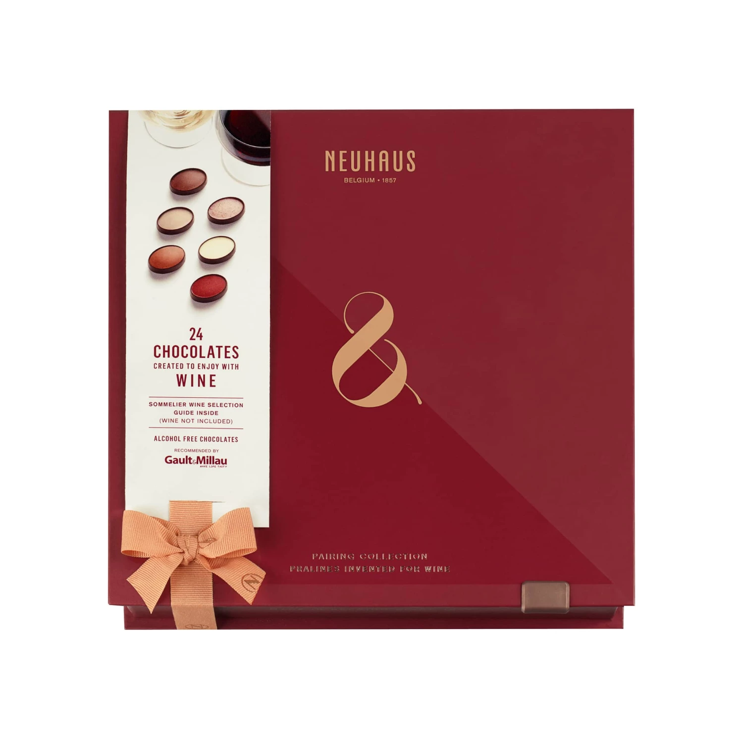 Neuhaus’ pralines wine pairing selection is the perfect sweet treat to serve with a glass of vino. From one of Belgium’s finest chocolatiers. Containing 24 chocolates in six different flavours, this collection is designed to be enjoyed alongside a glass of red or white wine – think of it as a tasting flight in chocolate form.