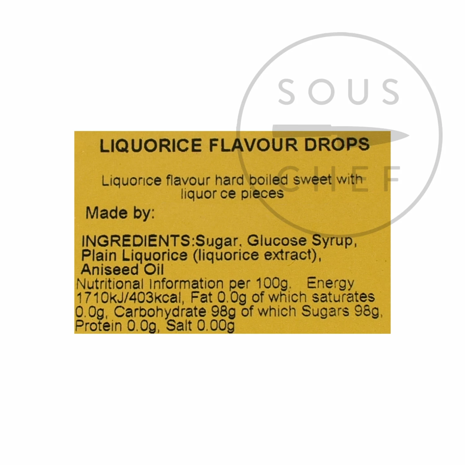 Ingredients: Sugar, glucose syrup, plain liquorice (liquorice extract), aniseed oil, flavours