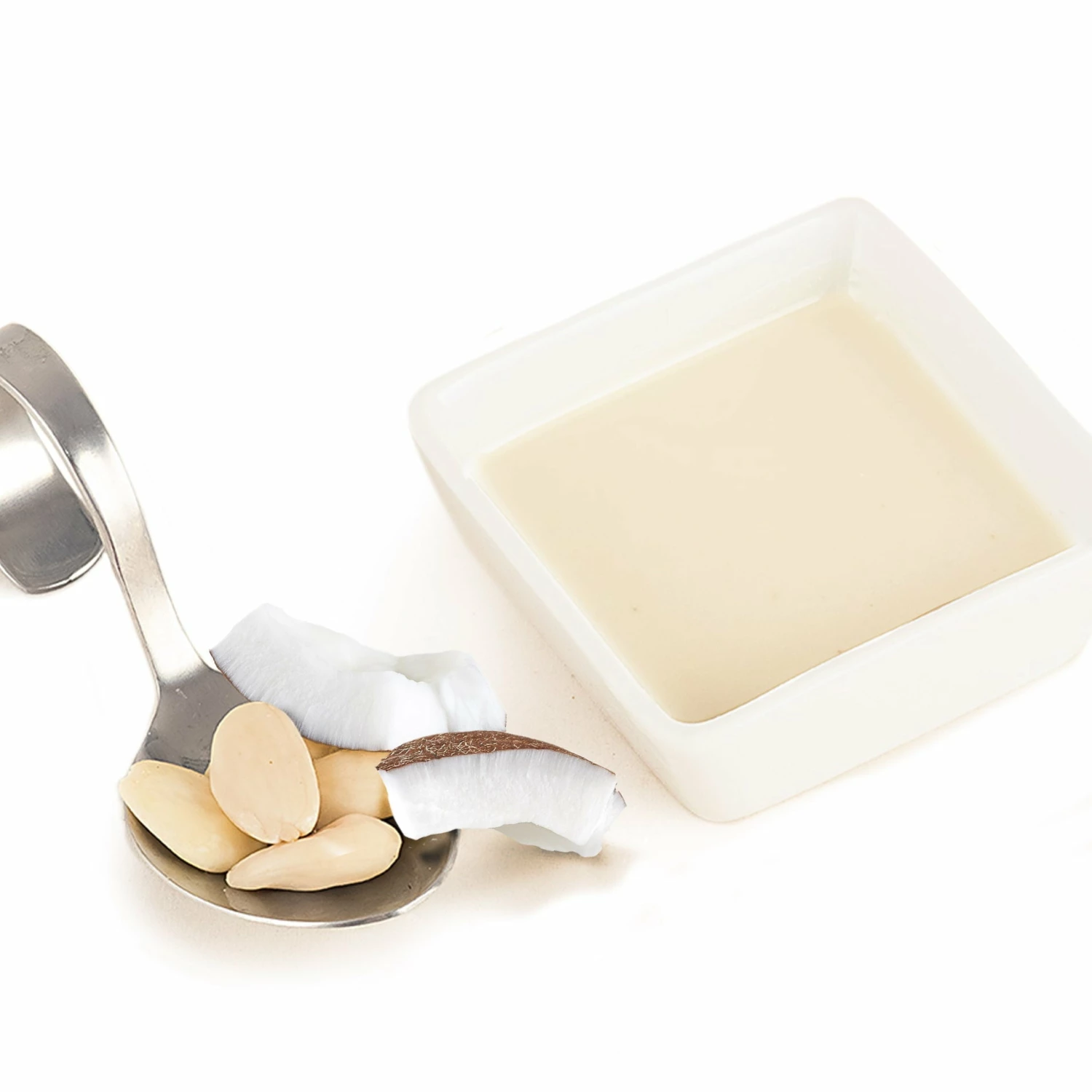 Use this almond and coconut spread to make a luxurious batch of ice cream, fold through melted dark chocolate and whisked egg whites for an indulgent mousse, or drizzle over mascarpone for a simple yet delicious dessert.