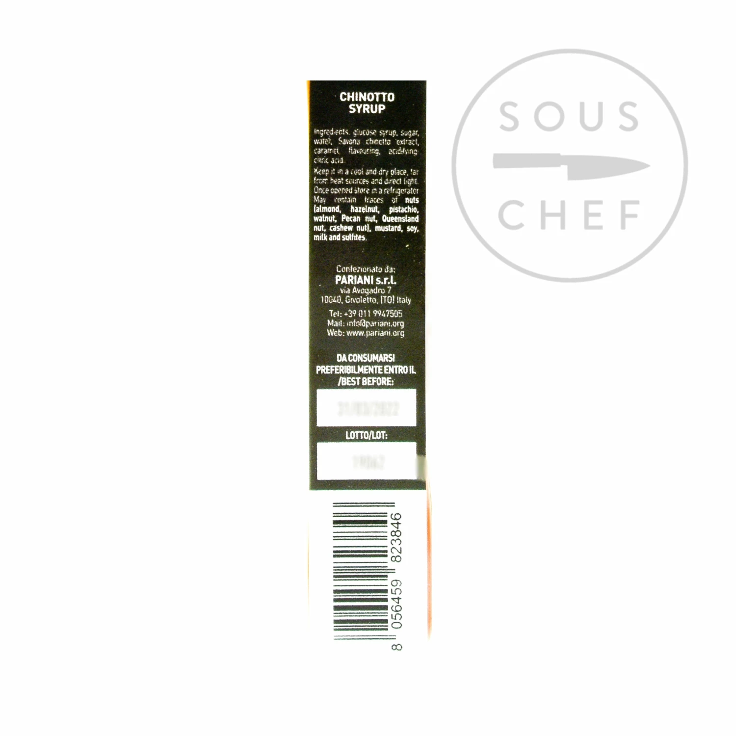 Ingredients: sugar (67%), Chinotto of Savona extract, flavourings, lemon juice coloured with caramel, preservatives: potassium sorbate E202. May contain traces of nuts, sesame, milk and soy. Allergens are listed in bold.
