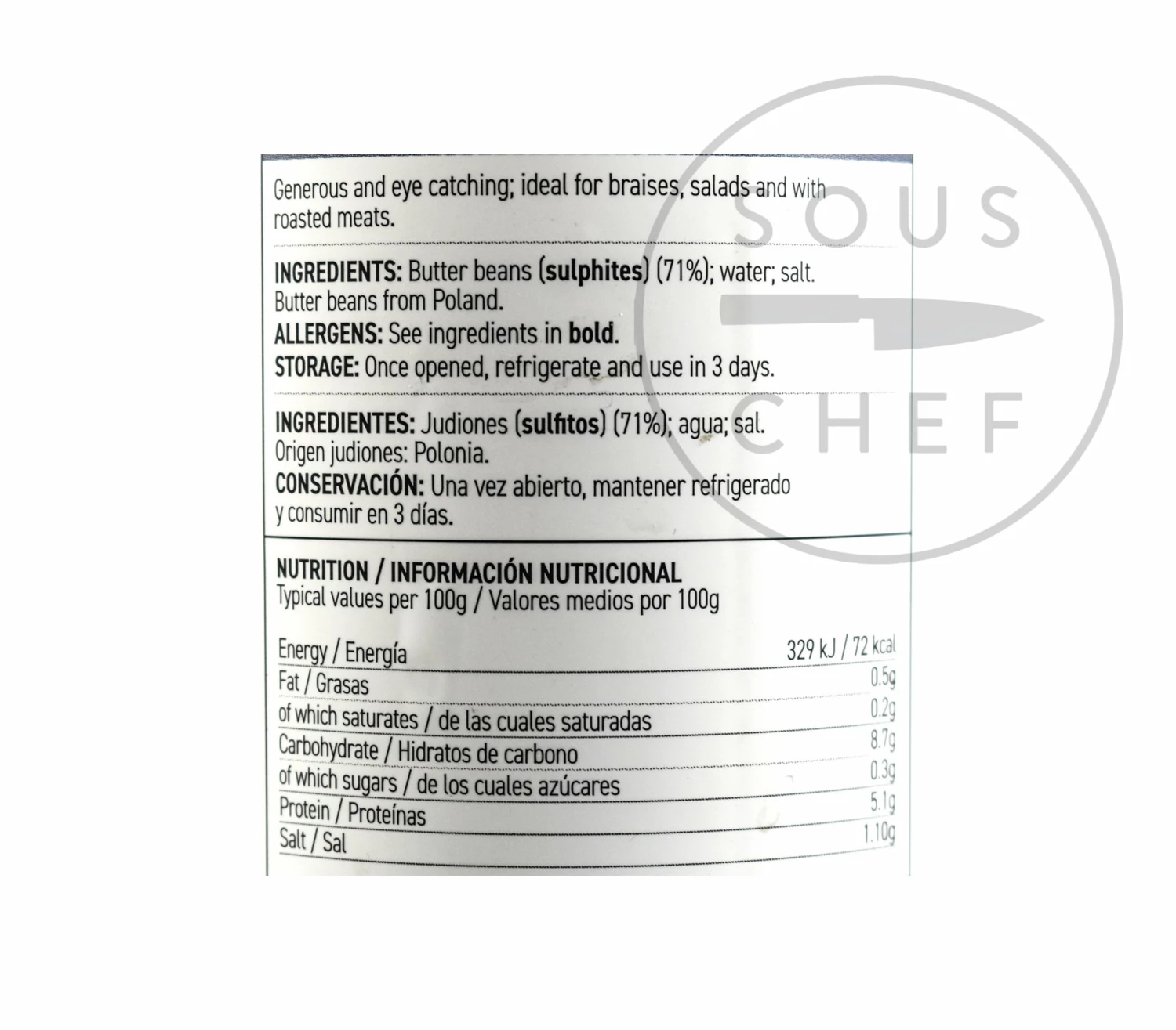Ingredients: Butter beans (sulphites) (71%), water, salt.