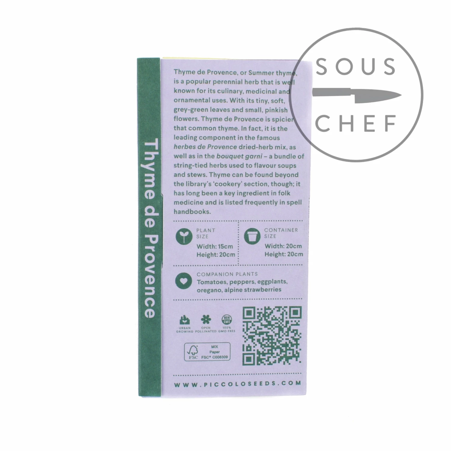 Thyme de Provence seeds love the sunshine, so will be really happy on a sun-drenched window in your kitchen. The thyme has soft grey-green leaves and small pink flowers, and is used widely in French and Mediterranean cooking.Â