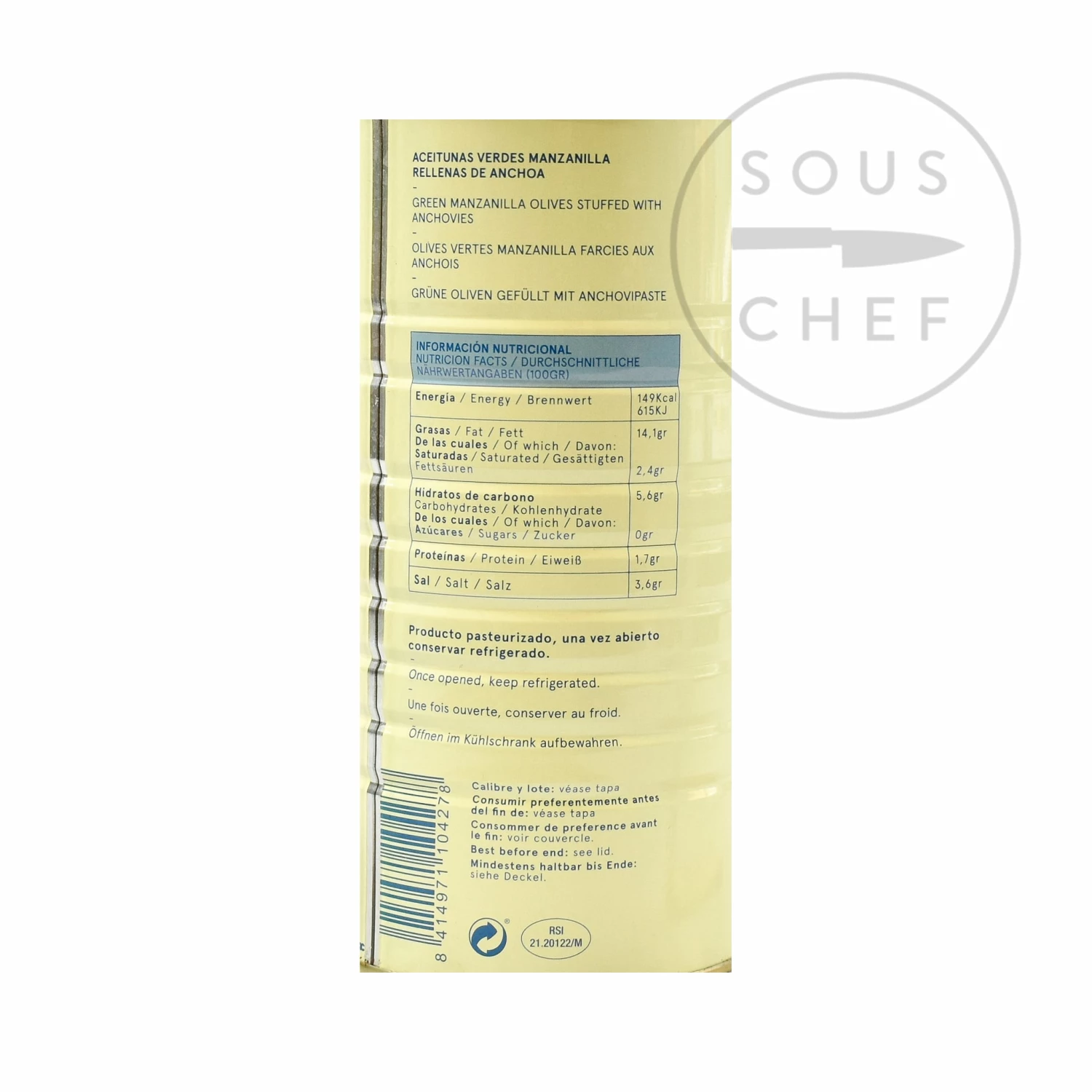 Try serving Manzanilla olives stuffed with anchovy paste as an instant nibble at parties and buffets. This large 1.4kg tin is ideal for catering at larger events – or simply if you know you have an olive fiend stopping by! The stuffed olives have a good balance of sweet, salty and bitter flavours – great for munching on while sipping on a Martini or Margarita. Also serve the stuffed Manzanilla olives as part of an antipasti selection.