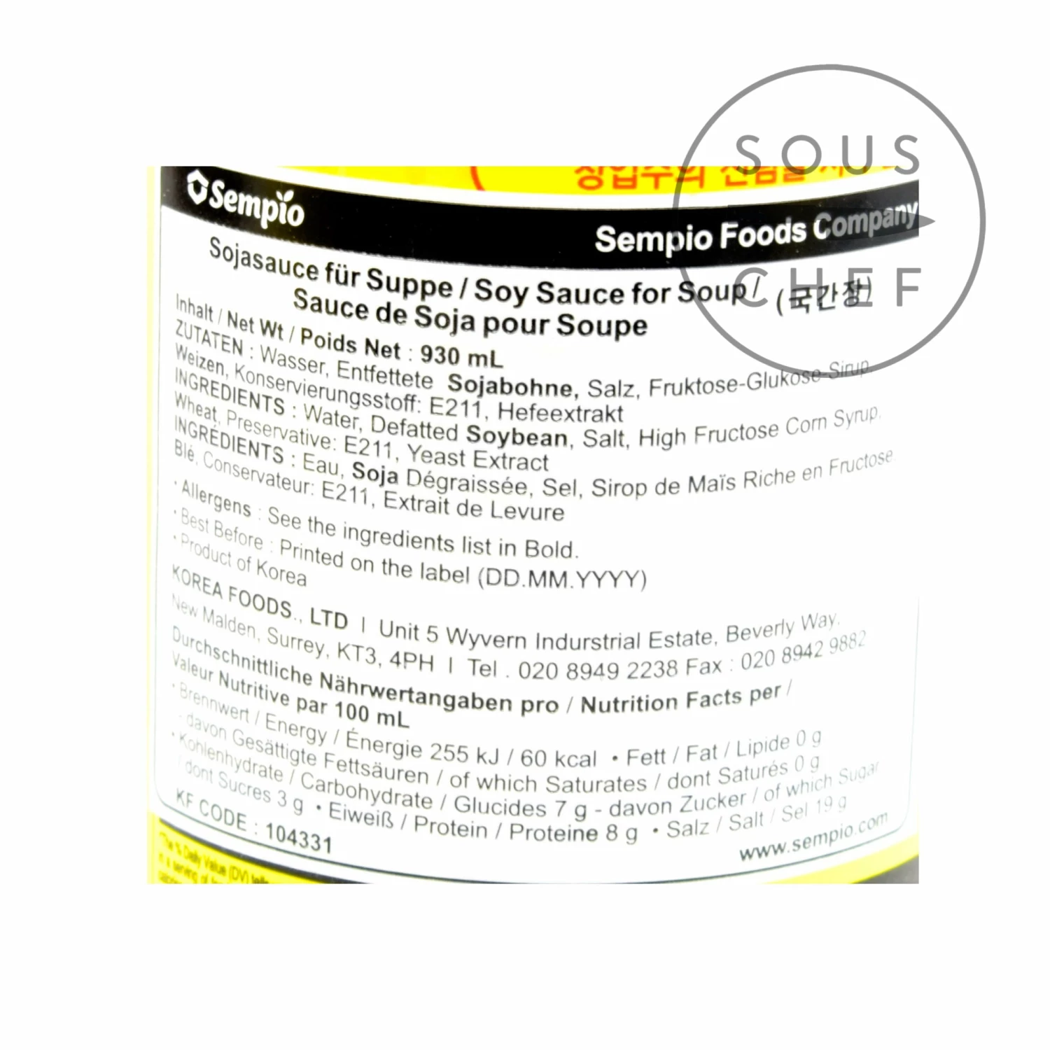 Ingredients: Water, defatted soybean, wheat, salt, corn syrup, yeast extract, sodium benzoate