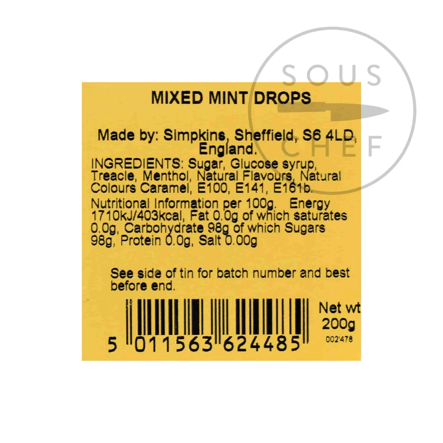 Ingredients: Sugar, glucose syrup, treacle, menthol, natural and artificial flavours, natural colours: caramel, E100, E141, E161b