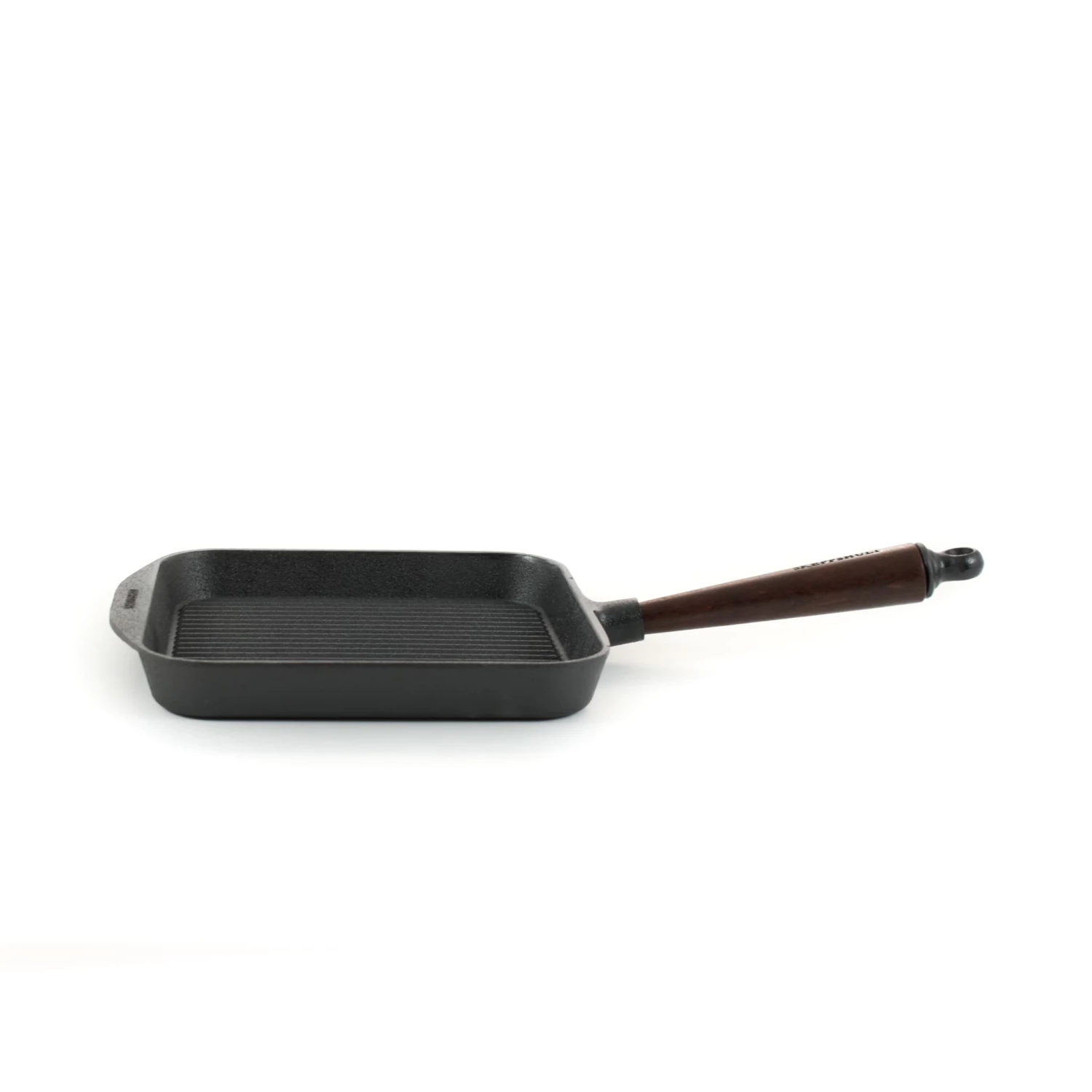 Use the Skeppshult traditional cast iron square grill pan for griddling fish, searing meat, and giving veg beautiful dark char marks. The high ridges are exactly what you want for making sharp, distinct grill lines that give food a dramatic finish. Plus the raised grill ridges mean fat drains away from the food, for proper grilling as opposed to frying.