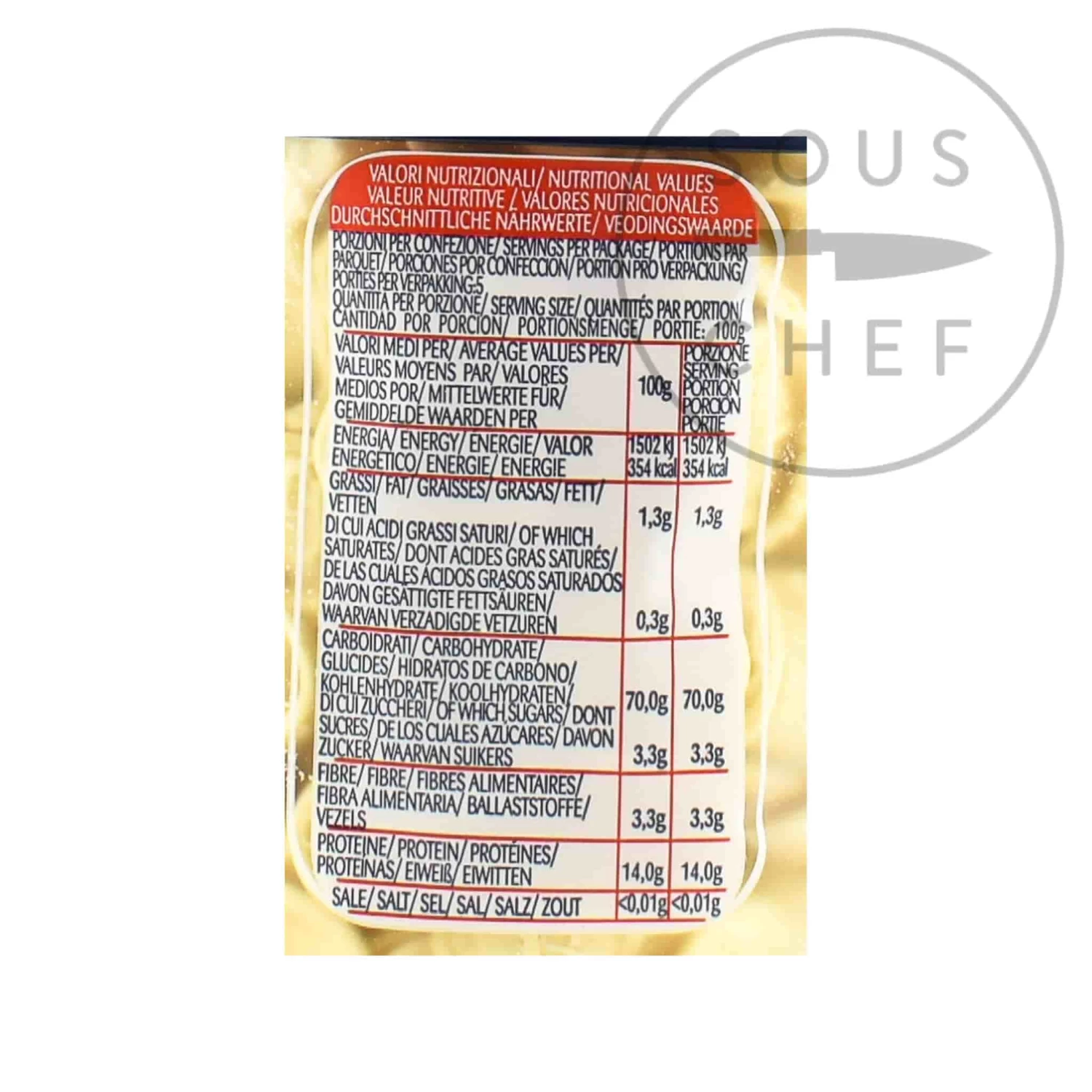 Pastificio Di Martino uses 100% durum wheat semolina, mixed with pure spring water from the Forma river to create the pasta. Each shape is bronze die cut, and dried slowly to retain the starch and protein content – giving it a distinctive pale colour, great firmness and rough texture.Â