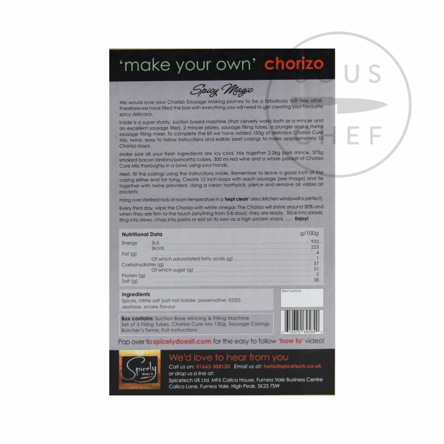 Make your own delicious Spanish-style sausages with this chorizo making kit, which includes the sausage machine. The kit will give you punchy, spiced sausages packed with paprika and chilli – ready to eat after just 5-8 days of drying. The kit has everything you need apart from fresh meat and red wine.