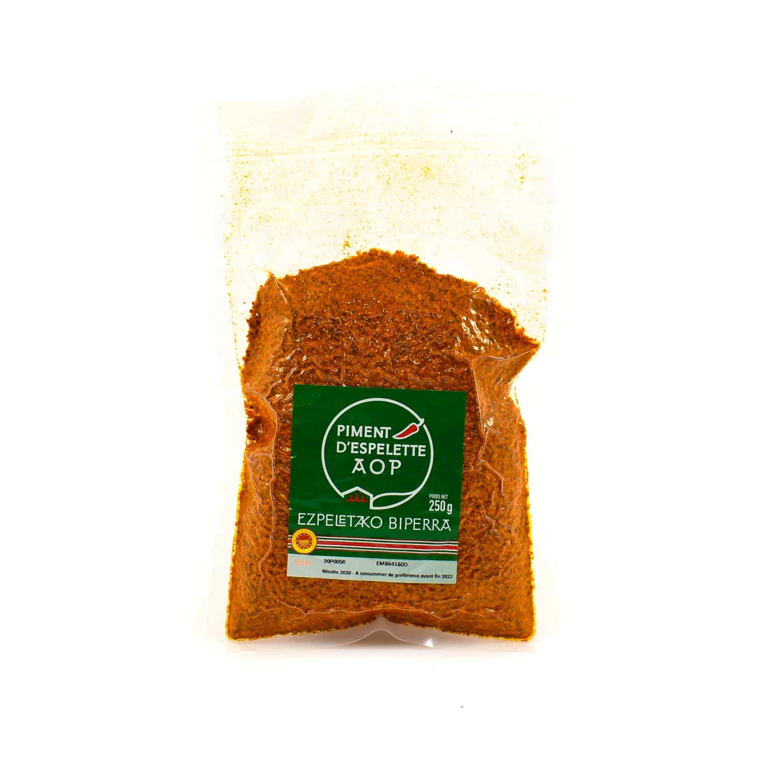 This 250g bag is ideal for home and professional kitchens – the Espelette chilli pepper PDO powder comes in opaque packaging, protecting it from light and preserving the fresh flavour, while the flat base makes it easy to store.