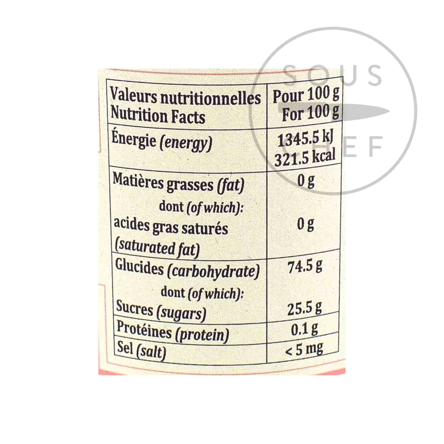 Terre Exotique’s glucose syrup is a natural, simple liquid sugar for use in chocolate work, ice creams and jams. Unlike sugar, you can work with glucose syrup for as long as possible without it burning.Â