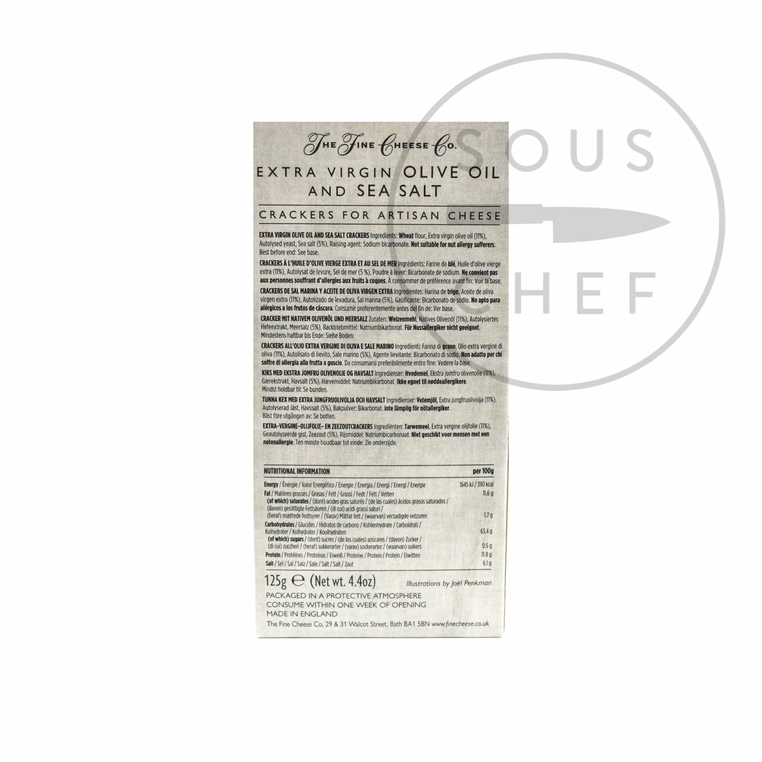 Ingredients: Wheat flour, extra virgin olive oil (11%), autolysed yeast, sea salt (5%), raising agent: sodium bicarbonate.Â