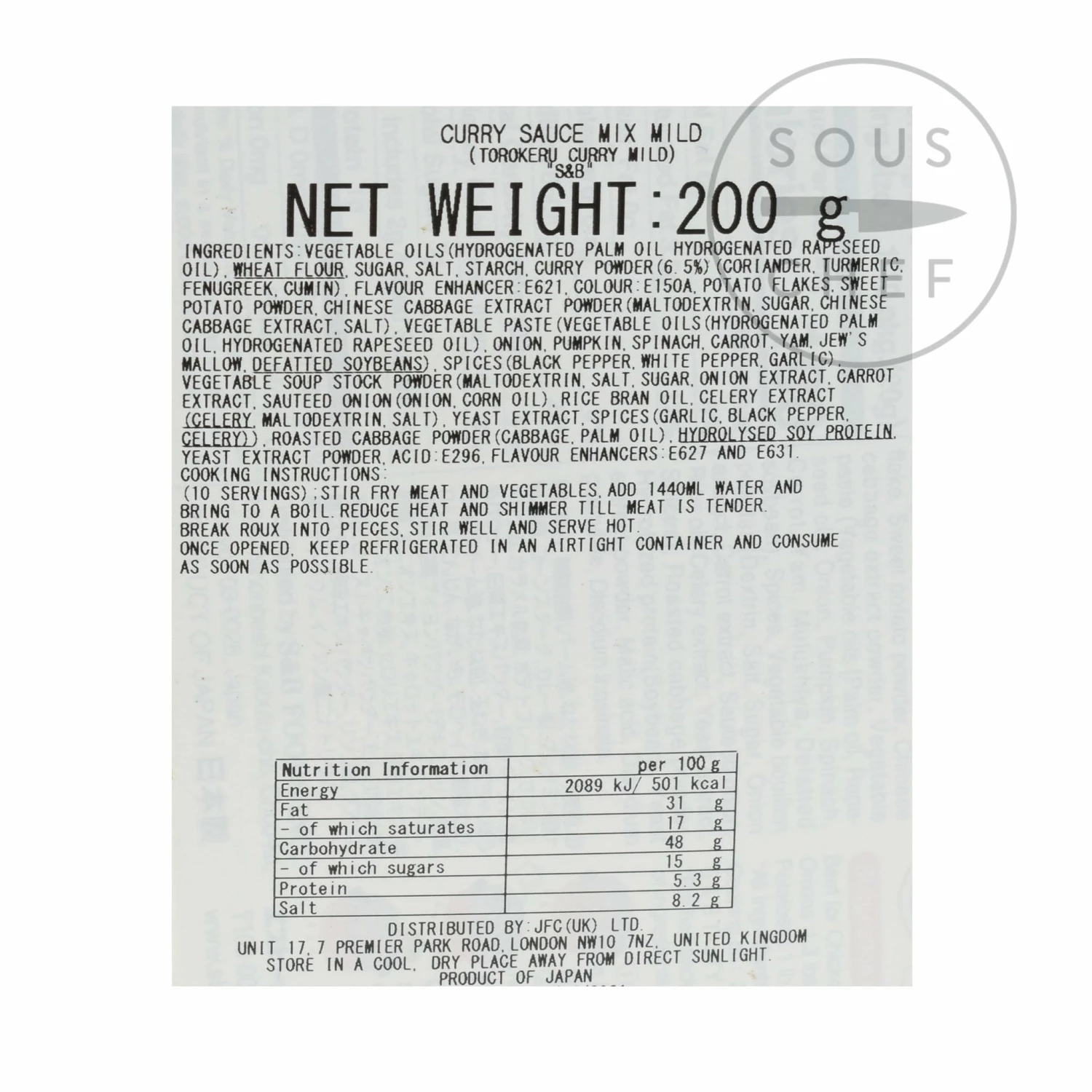 S & B torokeru curry lets you make a classic mild Japanese curry with just a few ingredients – and it only takes about half an hour! S & B is one of the most popular Japanese curry brands. The torokeru mild curry is a flavourful blend of spices with a hint of sweetness.