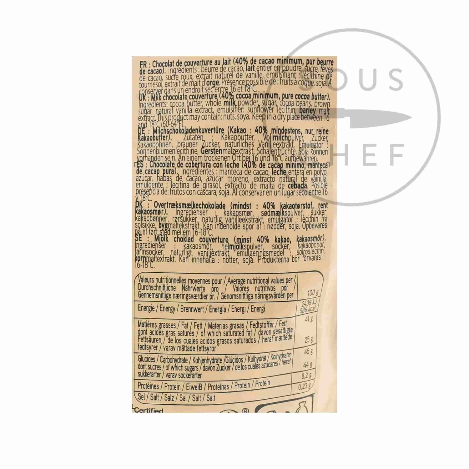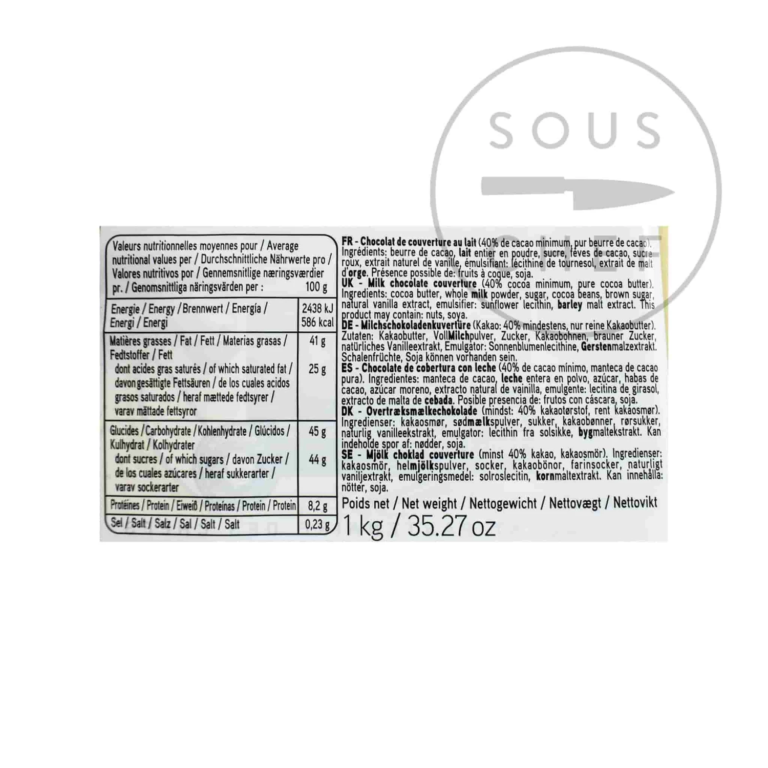 Ingredients: cocoa butter, whole milk powder, sugar, cocoa beans, brown sugar, natural vanilla extract, emulsifier: sunflower lecithin, barley malt extract.